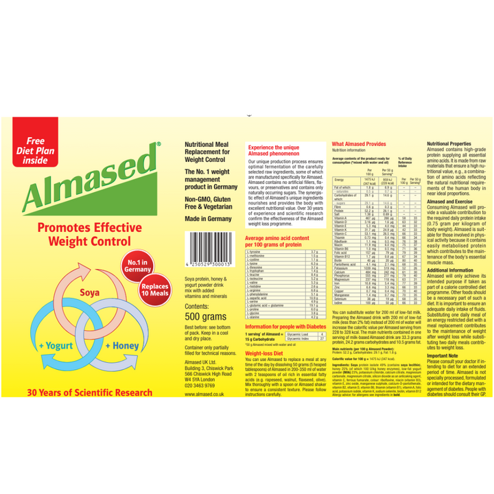Almased - Soya, Yogurt and Honey Meal Replacement for Weight Control Powder 500 g (T)