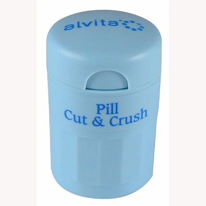 Pill Cutter & Crusher. Suitable For Those Who Are Unable Or Have Difficulty Swallowing Pills. Alvita Pill Cutter and Crusher Alvita Pill Cutter and Crusher is the ideal tool for anyone looking to take the hassle out of cutting or crushing tablets. The product has a handy storage compartment for tablets, as well as a crusher that enables you to create a fine powder from your medication. Whether you’re looking to cut tablets more easily or crush them into smaller doses, Alvita Pill Cutter and Crusher makes it easy. Benefits of Alvita Pill Cutter and Crusher This 3-in-1 handheld device will cut, split, crush and save your pills safely and effortlessly. – The top chamber of the device easily cuts pills with the stainless-steel blade while keeping your fingers safe. – Unscrew the center of the item, and then rotate and tighten box to grind the pills into powder. – The bottom chamber can be used to store multiple pills or store unused portions of split pills. – The BPA free and food-grade plastic construction of our pill grinder crusher makes it safe and ensures your tablets are free of harmful chemicals.