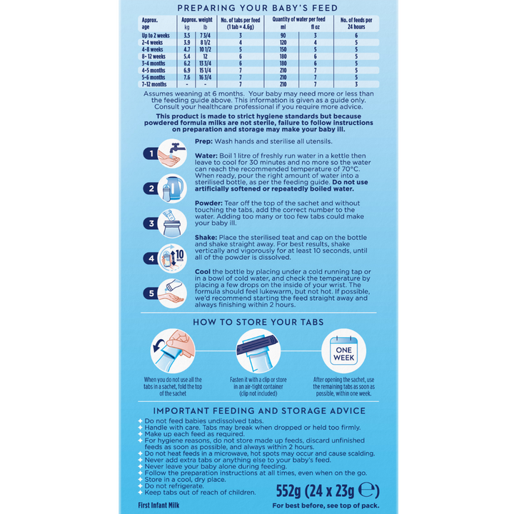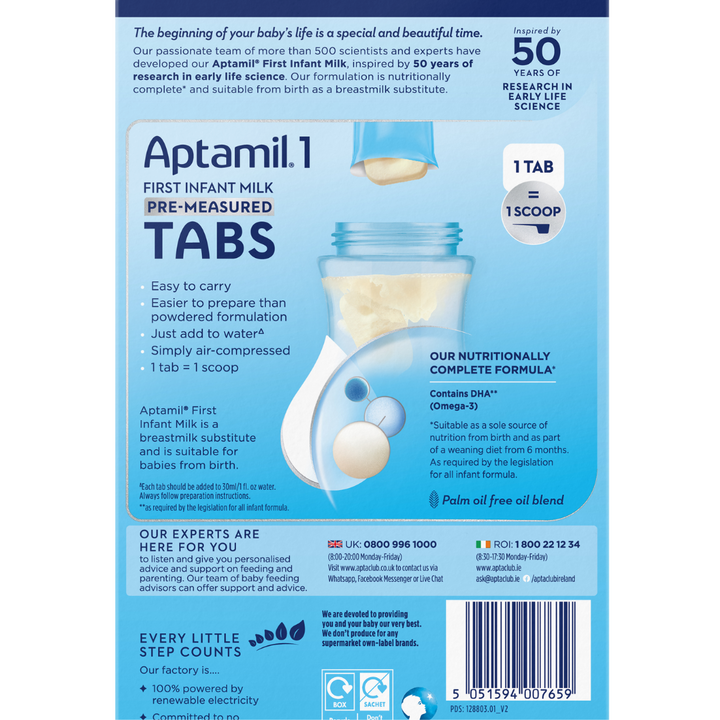 Suitable for infants from birth up to 6 months*. For 6+ months, use Aptamil 2 Follow On Baby Milk Formula Tabs 6-12 Months (120 Tabs)