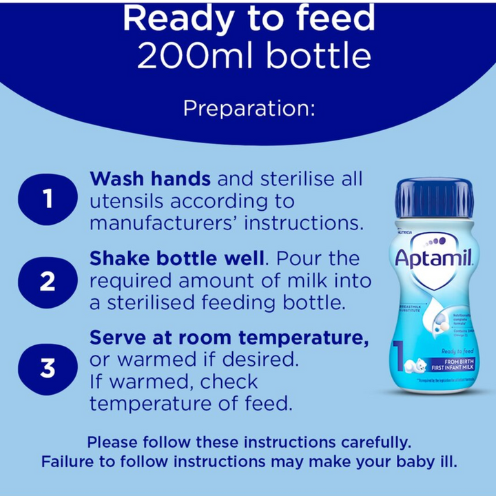 Aptamil first milk can be given at room temperature or warmed if desired. If warmed check temperature of feed.