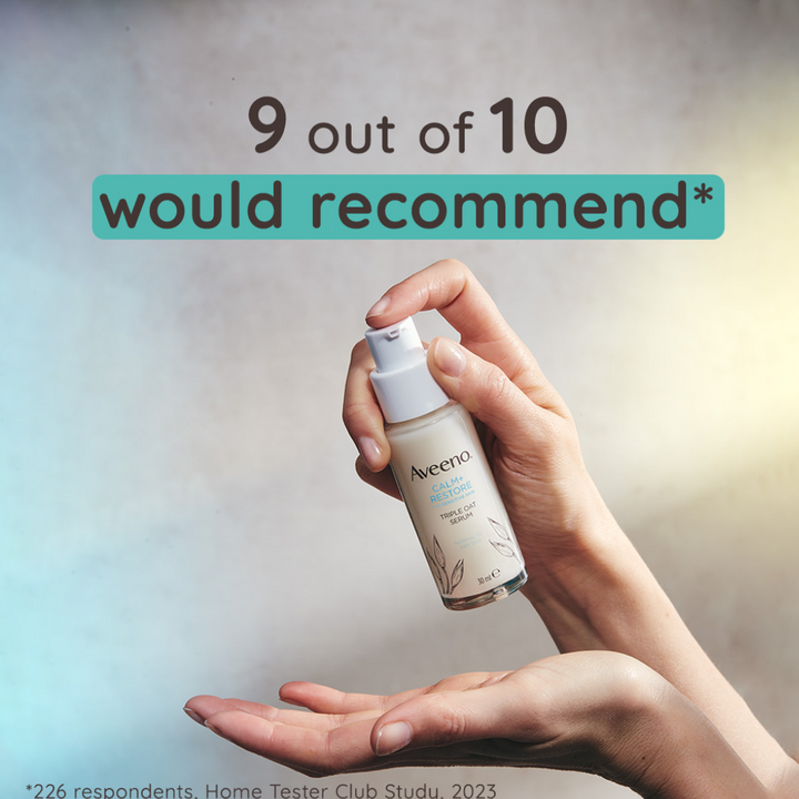 Instantly smooth and soothe sensitive skin with the Aveeno Face CALM+RESTORE® Triple Oat Serum. With 100% pure, nourishing oat, the lightweight, easily absorbed serum fortifies the skin's moisture barrier, leaving it hydrated and nourished. Experience hydration after just one use, with 24 hour moisturisation.