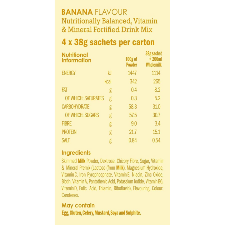 Skimmed Milk Powder, Dextrose, Chicory Fibre, Sugar, Vitamin and Mineral