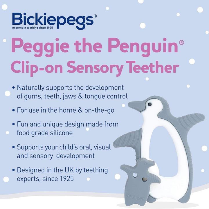 When it comes to buying the best teethers for your baby, Peggie the Penguin has got you covered. It’ll be all smiles and no tears when your baby grabs a hold of this cute sensory teething ring! Featuring a friendly grey and white soft silicone design, Peggie the Penguin is one of the most adorable teething toys that you can buy for your child. Delivering sensorial playtime and teething relief for your baby all in one.