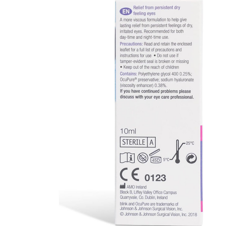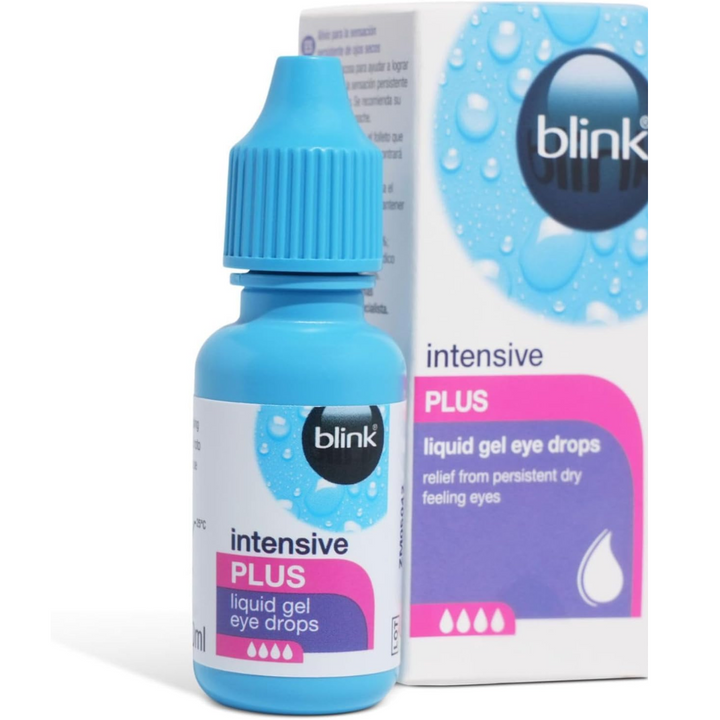 Blink Intensive Tears Plus liquid gel has a higher viscosity hypotonic formulation for even longer lasting relief and superior end-of-day comfort.