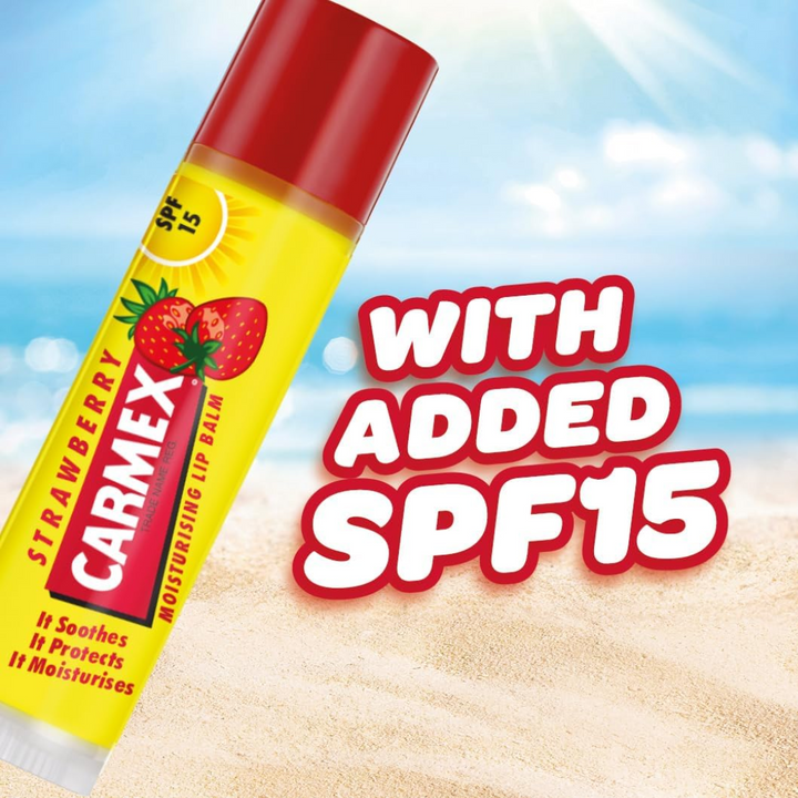 The Carmex Classic Lip balm stick is not just a treat to your senses; it's packed with SPF15, ensuring your lips are shielded from the sun’s harmful rays, making it an indispensable spf lip balm for your summer adventures.