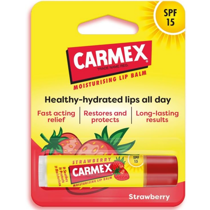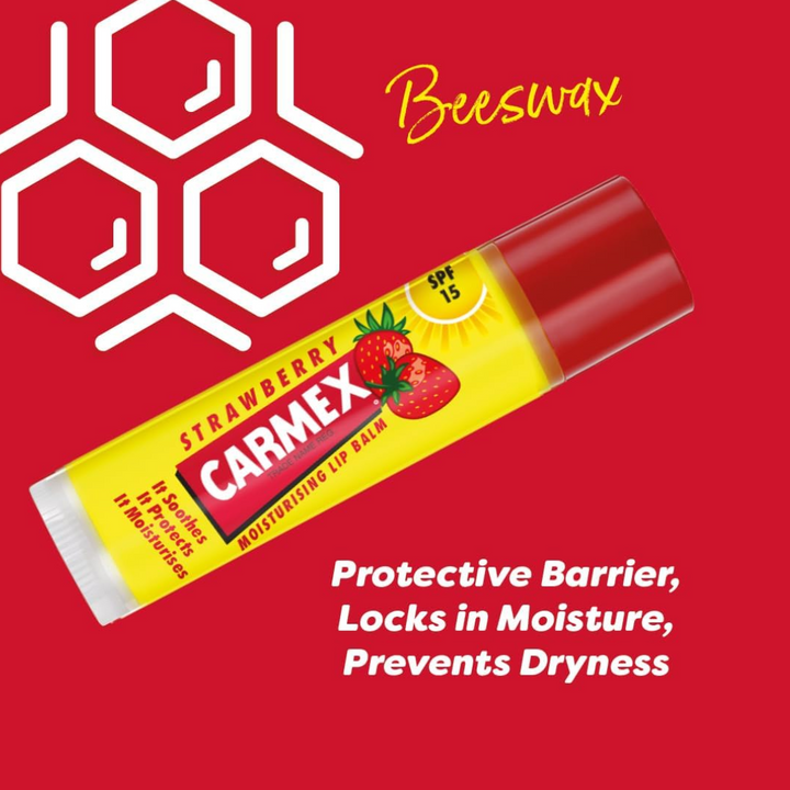Strawberry Scented: As a strawberry lip balm, it offers a fresh, fruity aroma enhancing the lip balm experience with the iconic Carmex tingle.
