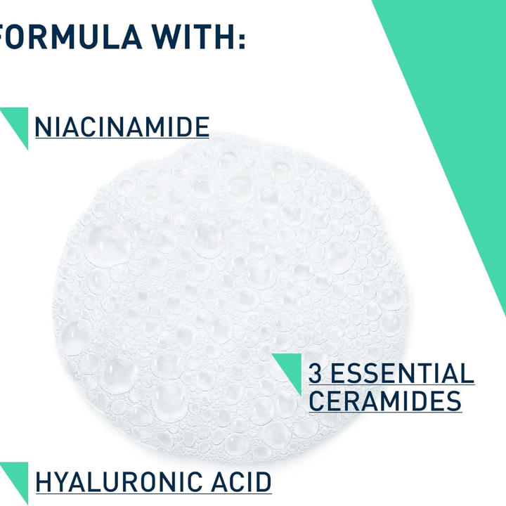 CeraVe Foaming cleansing gel thoroughly cleanses the skin. It effectively removes dirt, make-up and oil without attacking the skin's natural protection. It contains a combination of three essential ceramides 1, 3 and 6-ii, which build the skin's protection barrier and make the skin soft and velvety. The contained Niacinamide (vitamins B3) regulates the fat content of the skin and also strengthens it.