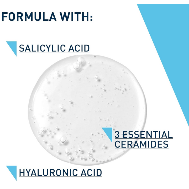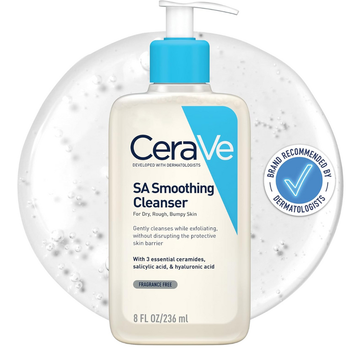 Developed with dermatologists. The gel formula of the CeraVe SA smoothing cleanser gently exfoliates and cleanses the skin. This cleanser can be used on both face and body. The formula is enriched with Salicylic acid and 3 essential ceramides, to smooth rough and bumpy skin, whilst protecting the skin barrier. The formula uses a patented MVE technology which means there is instant and long-lasting hydration. Hyaluronic acid also helps to retain the skin’s natural moisture.