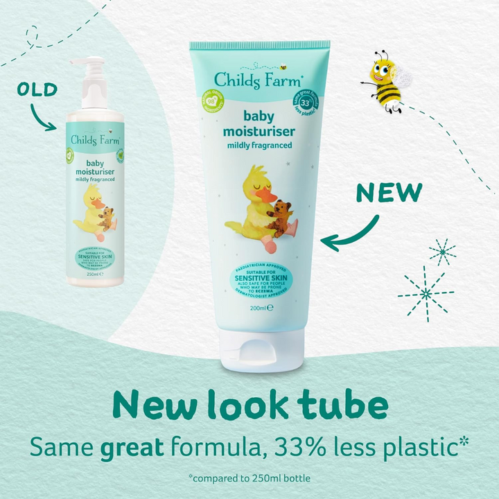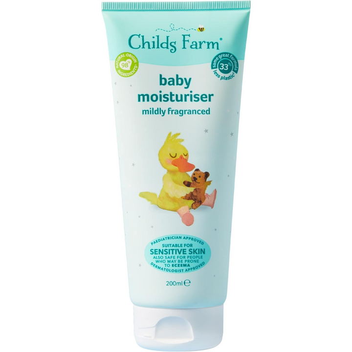 Childs Farm’s baby moisturiser uses key natural origin ingredients to care for baby’s delicate skin. The gentle formula is rich in shea butter to gently moisturise skin, leaving it feeling nourished and hydrated.