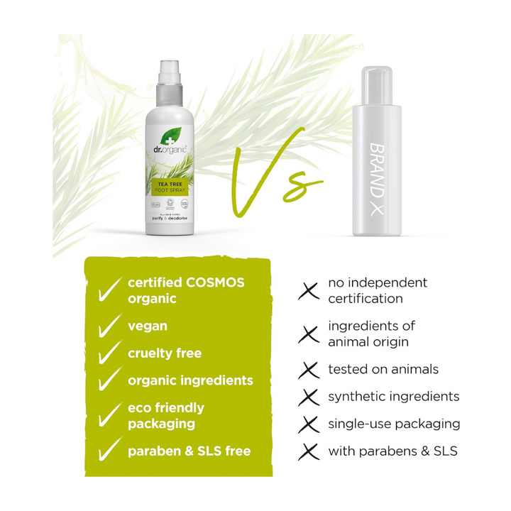 An instantly purifying, quick-drying deodorising spray with organic tea tree and peppermint oil that helps keep your feet fresh and comfortable all day.
