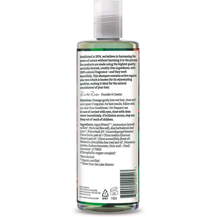 Aqua (Water), Aloe Barbadensis Leaf Juice**, Ammonium Lauryl Sulfate*, Cocamidopropyl Betaine*, Caprylyl/Capryl Glucoside*, Glycerin*, Chamomilla Recutita (Matricaria) Flower Extract**, Lavandula Hybrida Oil*, Cinnamomum Camphora Linaloolifera Wood Oil* / Cinnamomum Camphora (Camphor) Branch/Leaf Extract*, Citrus Aurantium Amara (Bitter Orange) Leaf/ Twig Oil*, Cymbopogon Martini Oil*, Pelargonium Graveolens Oil*, Rosmarinus Officinalis (Rosemary) Leaf Extract**, Urtica Dioica (Nettle) Leaf Extract**, Maris Sal (Sea Salt), Sodium Benzoate, Citric Acid*, CI75810 (Chlorophyllin-Copper Complex)*, Citronellol*, Geraniol*, Linalool**Plant derived **Organic certified