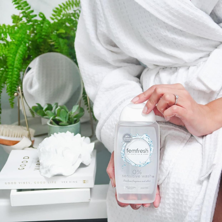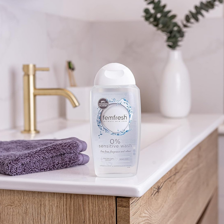 Give your intimate skin the gentle loving care it deserves, with Femfresh 0% Sensitive Intimate Wash, which is specially designed for sensitive skin. There are plenty of things in life that'll irritate you... but, with our gentle 0% Wash, your intimate skin won't be one of them. The specially formulated vegan-friendly fragrance and perfume-free body Wash gel is made with 94% natural original ingredients, and is enriched with natural lotus flower extract to help keep your intimate skin happy and feeling fresh all-day long. The pH-balanced, fresh and soothing formula is dermatologically and gynaecologically tested. It's also hypoallergenic and 100% soap free, so it's gentle enough to use daily. Ideal for use on your vaginal and vulval areas, Femfresh is specially designed to help maintain a healthy, natural pH – to help reduce irritation and prevent itching and discomfort. • Femfresh 0% Sensitive Intimate Wash - 1 x 250ml bottle • With natural lotus flower • pH balanced, soap free & fragrance free • Vegan friendly & biodegradable • Suitable for everyday use • Hypoallergenic • Dermatologically & gynaecologically tested • Simply later up & rinse thoroughly with warm water Ingredients: Aqua, Sodium Laureth Sulfate, Sodium Chloride, Cocamidopropyl Betaine, Nelumbo Nucifera Flower Extract, Hamamelis Virginiana Leaf Extract, Calendula Officinalis Flower Extract, Bambusa Vulgaris Leaf Extract, Aloe Barbadensis Leaf Extract, Glycerin, Propylene Glycol, Lactic Acid, Sodium Lactate, Triethyl Citrate, Polyquaternium-39, Maltodextrin, Dichlorobenzyl Alcohol, Sodium Benzoate, Potassium Sorbate, Sodium Hydroxide. Part of the Femfresh range. All products are specifically designed to care for women’s delicate vulval areas, to keep you feeling fresher for longer. Our intimate washes are pH-balanced and specifically designed for use on your intimate skin, so you can choose the perfect feminine wash to suit you!