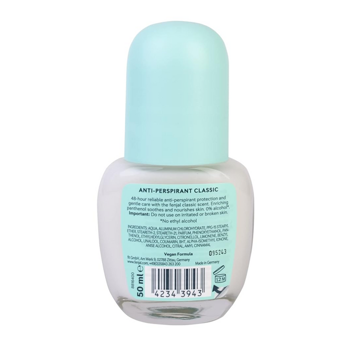 Fenjal Classic Creme deodorant roll-on 50ml: care for your skin with fenjal's classic Crème deodorant made with minerals and allantoin designed to gently soothe your skin. Delicately fragranced with the classic Fenjal scent. No alcohol, mineral oils, colourants, parabens or preservatives. Dermatologically tested. Fenjal classic Crème deodorant roll on offers 24-hour protection leaving you feeling and smelling fresh all day. Best suited to sensitive skin.