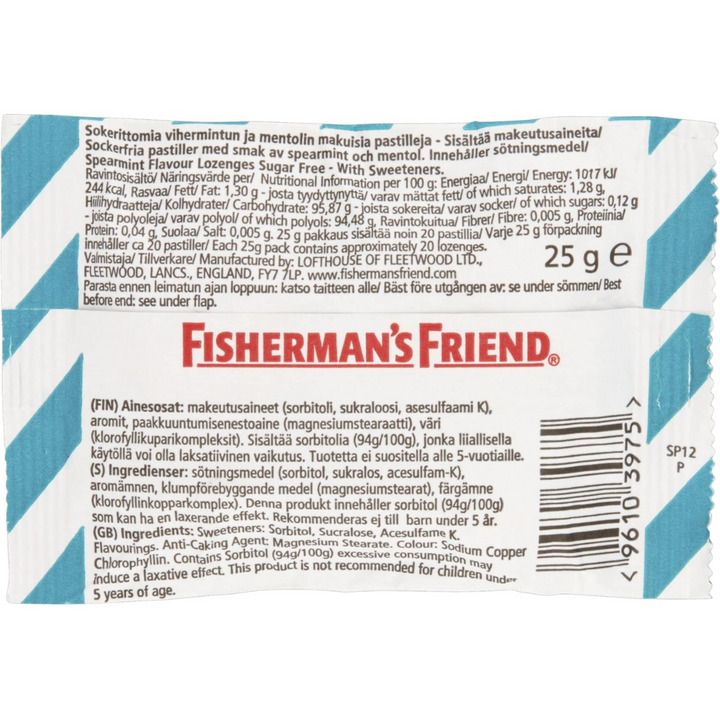Sweeteners: Sorbitol, Sucralose, Acesulfame K. Flavourings. Anti-Caking Agent: Magnesium Stearate. Colour: Sodium Copper Chlorophyllin. Contains Sorbitol (94g/100g) excessive consumption may induce laxative effect.