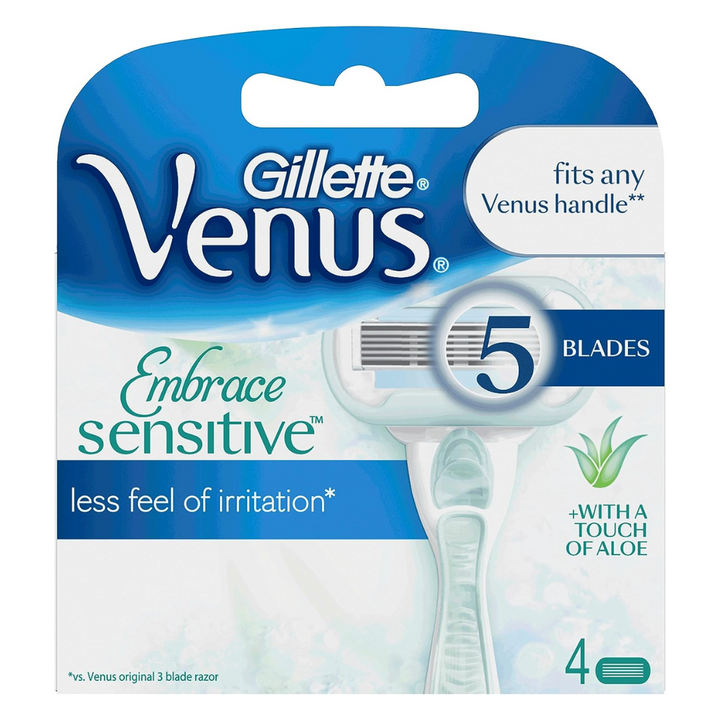 Gillette Venus Embrace Sensitive women's razor blade refills.
