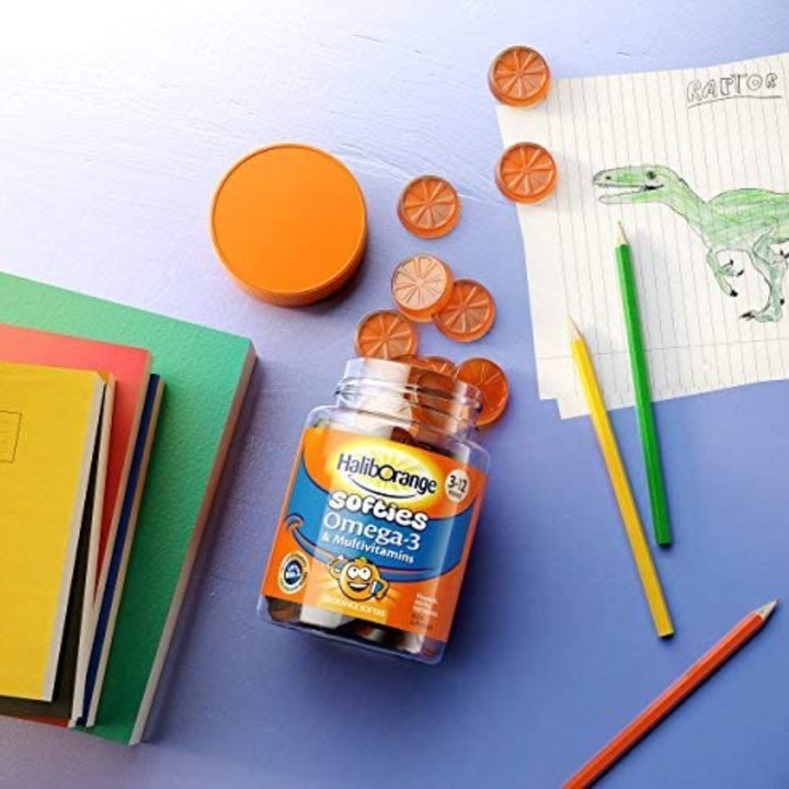 Haliborange Omega-3 & Multivitamins Softies contain 8 essential vitamins and are a delicious orange flavour.