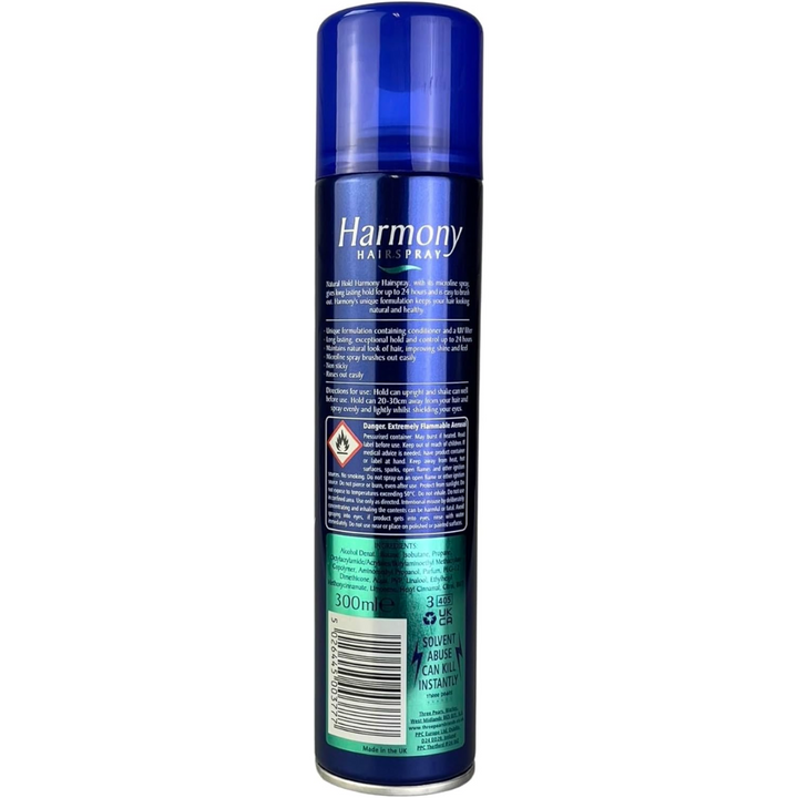 Harmony Natural Hold Hairspray is designed to provide a soft and natural hold, perfect for everyday use. It's formulated to keep your hair in place without leaving it stiff or sticky, allowing your hair to move naturally.