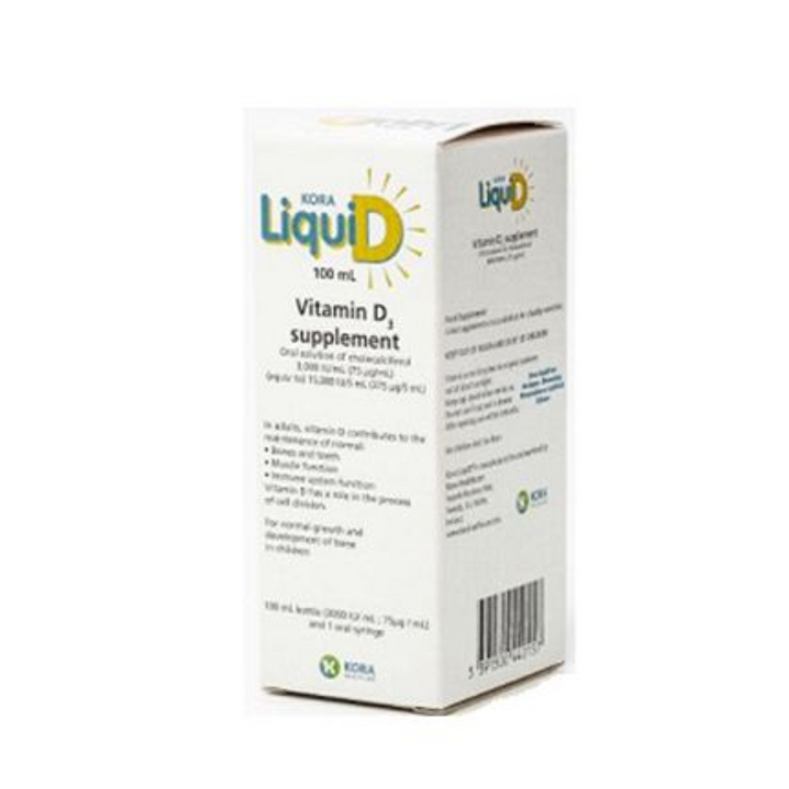 LiquiD is an oral solution of Vitamin D3 contained in a 100ml bottle and supplied with an oral dosing.