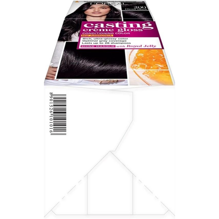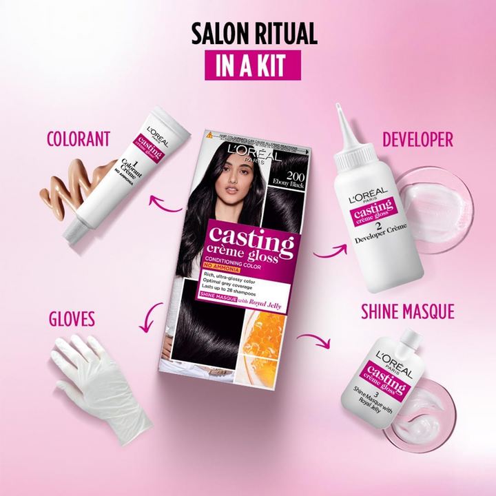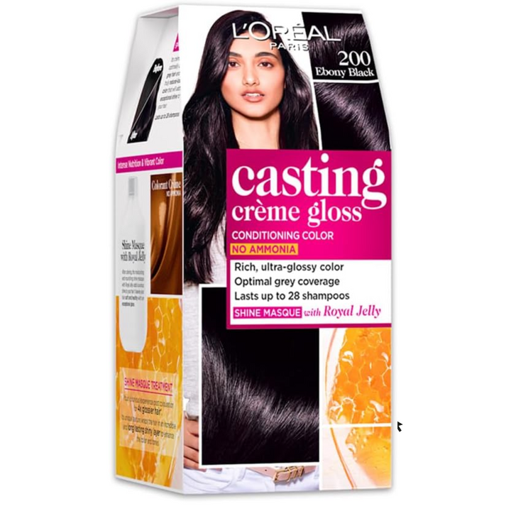L'Oreal Paris Casting Creme Gloss Semi-Permanent Hair Dye, Black Hair Dye 200 Ebony Black