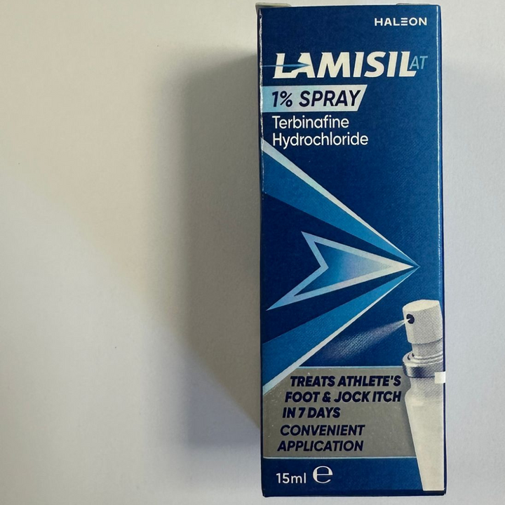 Lamisil spray Dosage:16 years and over: apply once daily for one week to clean dry skin. Apply sufficient spray solution to wet the treatment area(s) and to cover the surrounding area.Under 16 years: not recommended. |