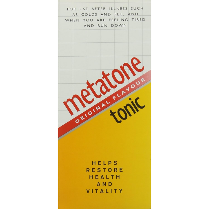 Metatone Original Flavour Tonic works perfectly in restoring health and vitality when feeling tired and run-down after illnesses such as cold and flu. Category: Tonics and Stimulants USES: Convalescence and debility |