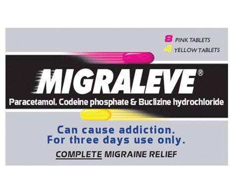 DOSAGE: Do not take for more than three days continuously without medical review. Can cause addiction. 16 years and over: 2 Pink tablets at onset. If required, 2 Yellow tablets every 4 hours. Maximum 2 Pink and 6 Yellow tablets in 24 hours. 12-15 years: 1 Pink tablet at onset. If required 1 Yellow tablet 4 hourly. Maximum 1 Pink and 3 Yellow tablets in 24 hours. Under 12 years: not to be given. |