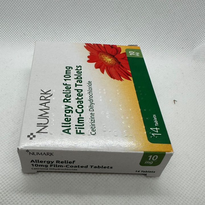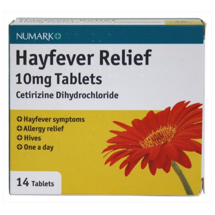 Numark Hayfever Relief Cetirizine Dihydrochloride 10mg Tablets are an antihistamine which blocks the effects of histamine (naturally occuring substance in the body that is involved in allergic reactions). It effectively relieve the unpleasant symptoms and discomfort associated with allergies such as sneezing, irritated, runny and blocked up nose, itchy, red and watering eyes and skin rashes.