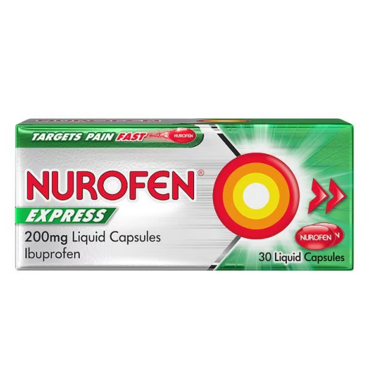Nurofen Express 200mg Liquid Capsules are absorbed faster than standard ibuprofen dose to help provide effective relief from pain associated with headaches, back pain, period pain and muscle pain and more.