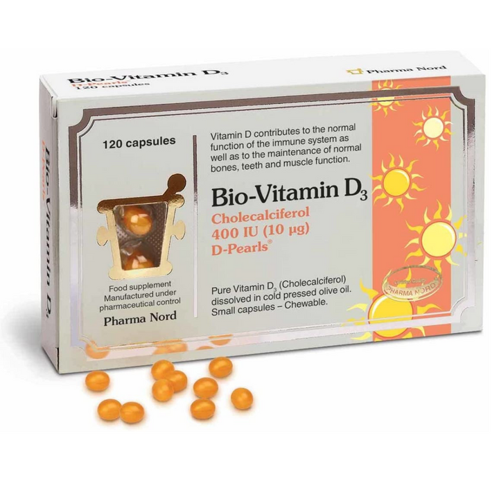 Vitamin D3 supports immunity, muscle function and the maintenance of teeth and bones. Bio-Vitamin D3 are dissolved in cold-pressed olive oil and in small, easy-to-swallow pearls. Bio-Vitamin D3 uses the ideal form of vitamin D for the body and demonstrates proven bio-availability.IngredientsOlive oil, capsule shell: bovine gelatin, humectant: glycerol, purified water, cholecalciferol (vitamin D3)