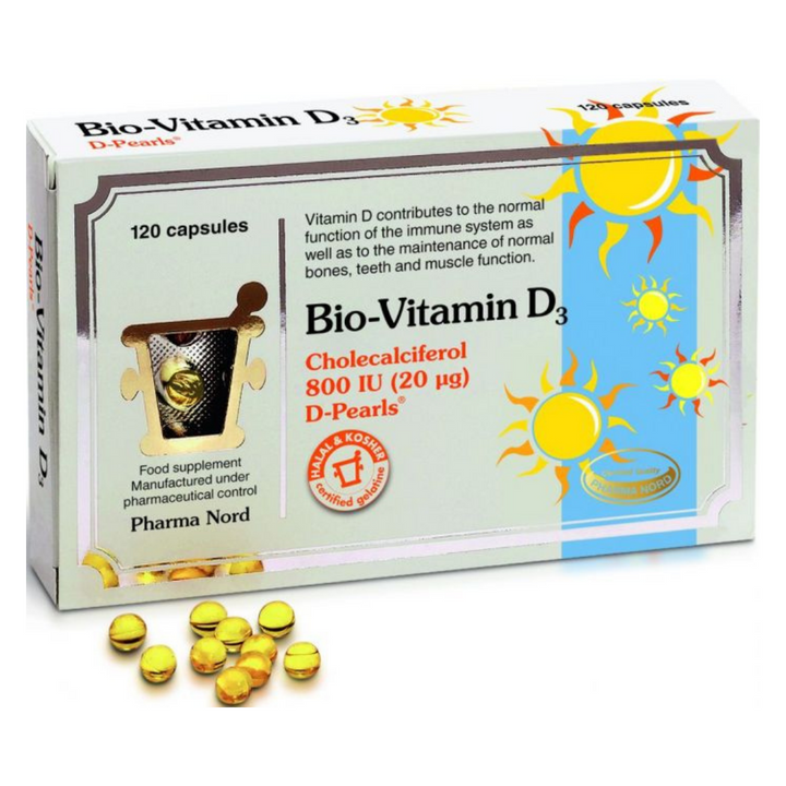 | Vitamin D3 supports immunity, muscle function and the maintenance of teeth and bones. Bio-Vitamin D3 are dissolved in cold-pressed olive oil and in small, easy-to-swallow pearls. Bio-Vitamin D3 uses the ideal form of vitamin D for the body and demonstrates proven bio-availability.IngredientsOlive oil, capsule shell: bovine gelatin, humectant: glycerol, purified water, cholecalciferol (vitamin D3)