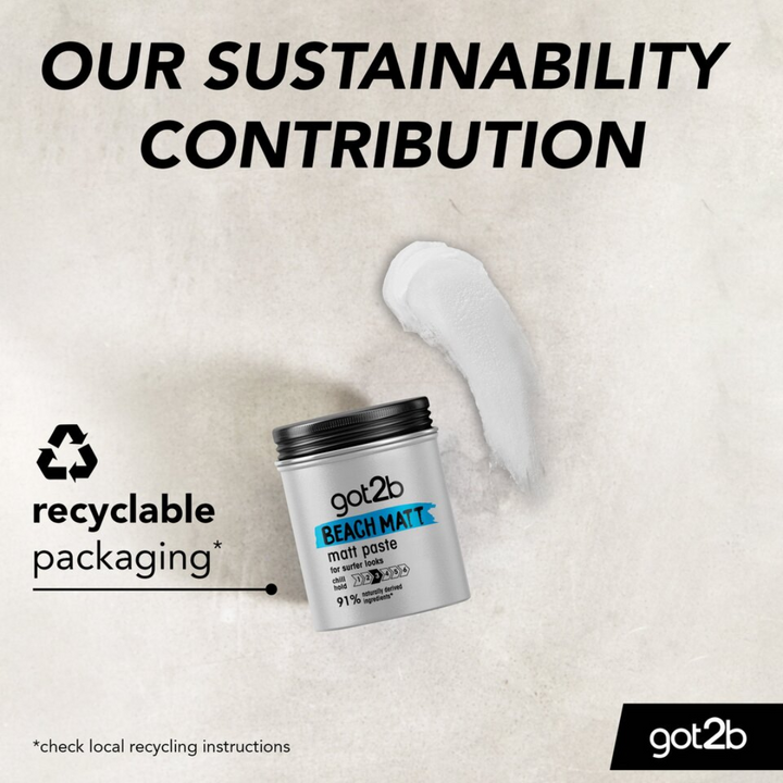 got2b Beach Matt Paste 100ml is an easy to use, medium hold hair styling paste designed to give your hair texture and definition. Free from silicones, it can be used on dry or towel dried hair to deliver that tousled, textured surfer look, with a matt finish and no stickiness.