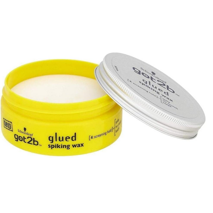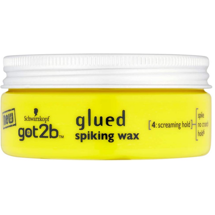Schwarzkopf got2b glued spiking wax with screaming hold for remouldable extreme styles without the crunch. Its moulds like a wax and used for outrageous spikes twist.