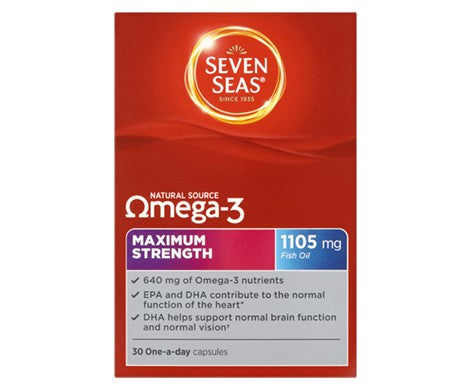 DOSAGE: Over 12 years: 1 capsule daily. Buy Seven Seas Omega-3 Maximum Strength - 30 Capsules online with your trusted pharmacy partner Pharmazon Direct with next day UK delivery. |