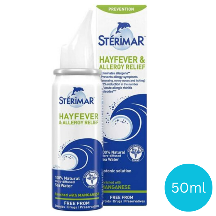Sterimar Hayfever & Allergy Relief is suitable from 3 years & up to help to clear and cleanse nasal passages, washing out allergens responsible for allergic reactions. 100% natural micro-difused sea water. Isotonic solution enriched with Manganese. Free from steroids, drugs, preservatives. Approximately 150 sprays.