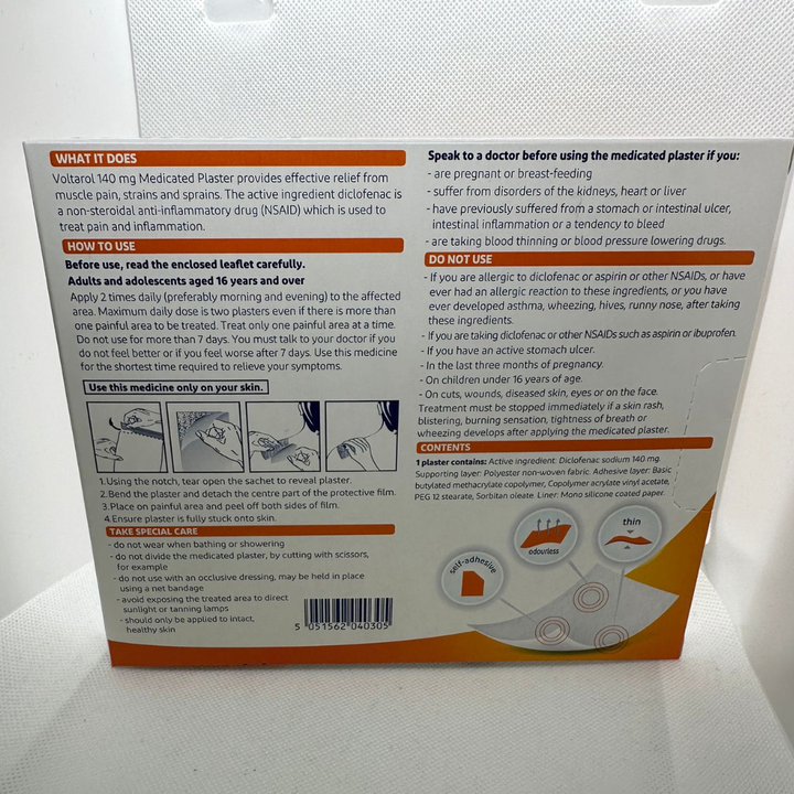 Voltarol Medicated Plaster provides powerful efficacious pain relief in a plaster format. It is a medicated pain relief plaster with anti-inflammatory action available at pharmacy counters in packs of 2 and 5. Category: Analgesics |